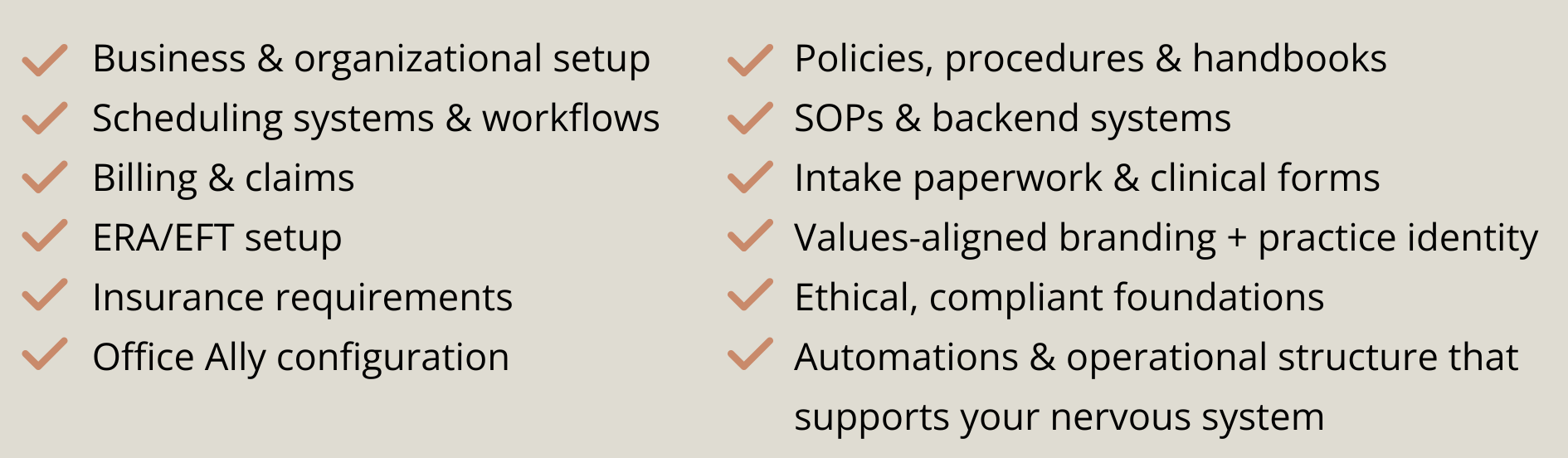 A creative, values-aligned practice architecture studio for therapists, BCBAs, coaches, and wellness practitioners